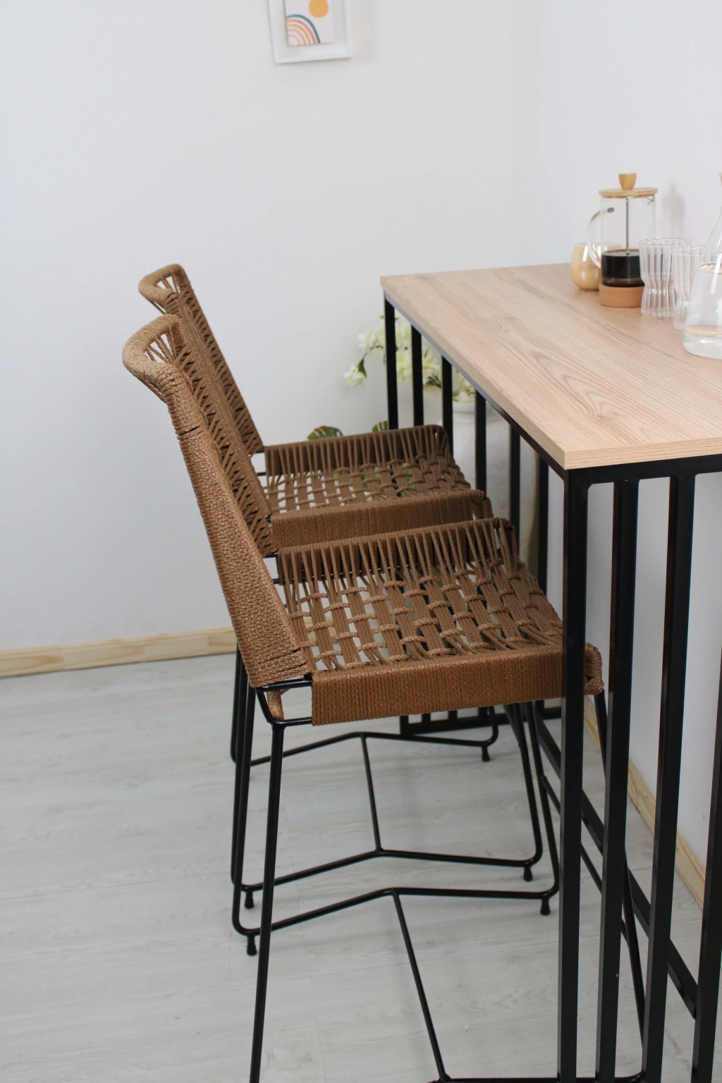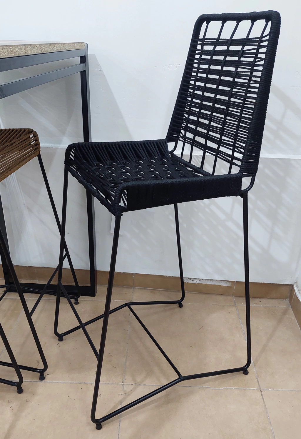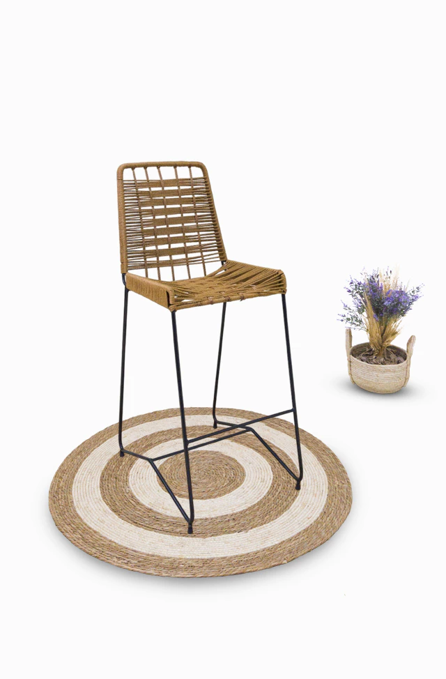 Banqueta Artesanal tejida a mano en simil yute, con estructura de hierro macizo. Ideal para barras, desayunadores o terrazas.