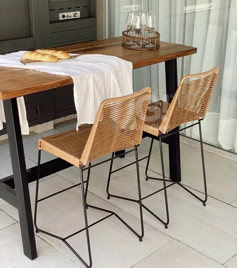 Banqueta Artesanal tejida a mano en simil yute, con estructura de hierro macizo. Ideal para barras, desayunadores o terrazas