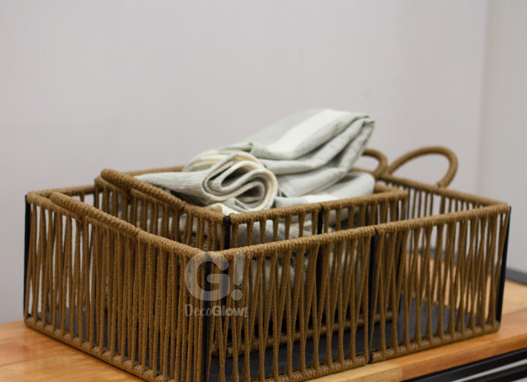 ¡Mantén tu hogar ordenado y con estilo con nuestro canasto organizador rectangular! Disponible en dos tamaños, es perfecto para almacenar mantas, toallas y otros objetos del hogar Ideal para guardar mantas, toallas y objetos del hogar.