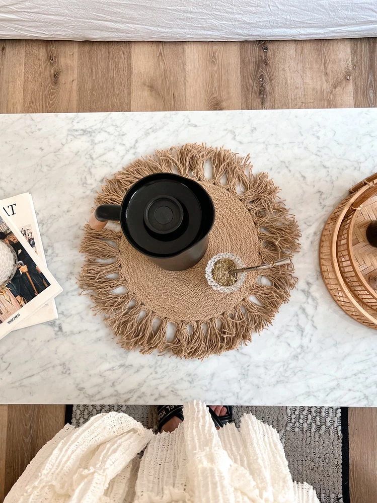 Descubre nuestros individuales con flecos, ideales para realzar cualquier ocasión. Cada diseño combina elegancia y estilo.