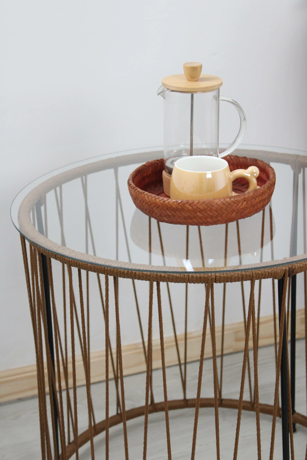 Hecha a mano en hierro reforzado y tejido en símil yute.