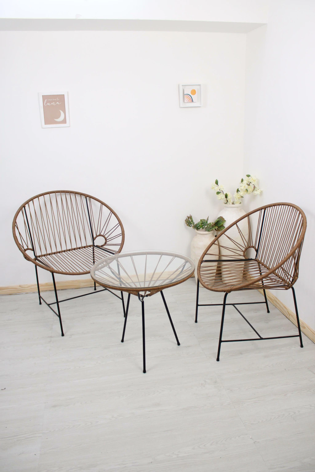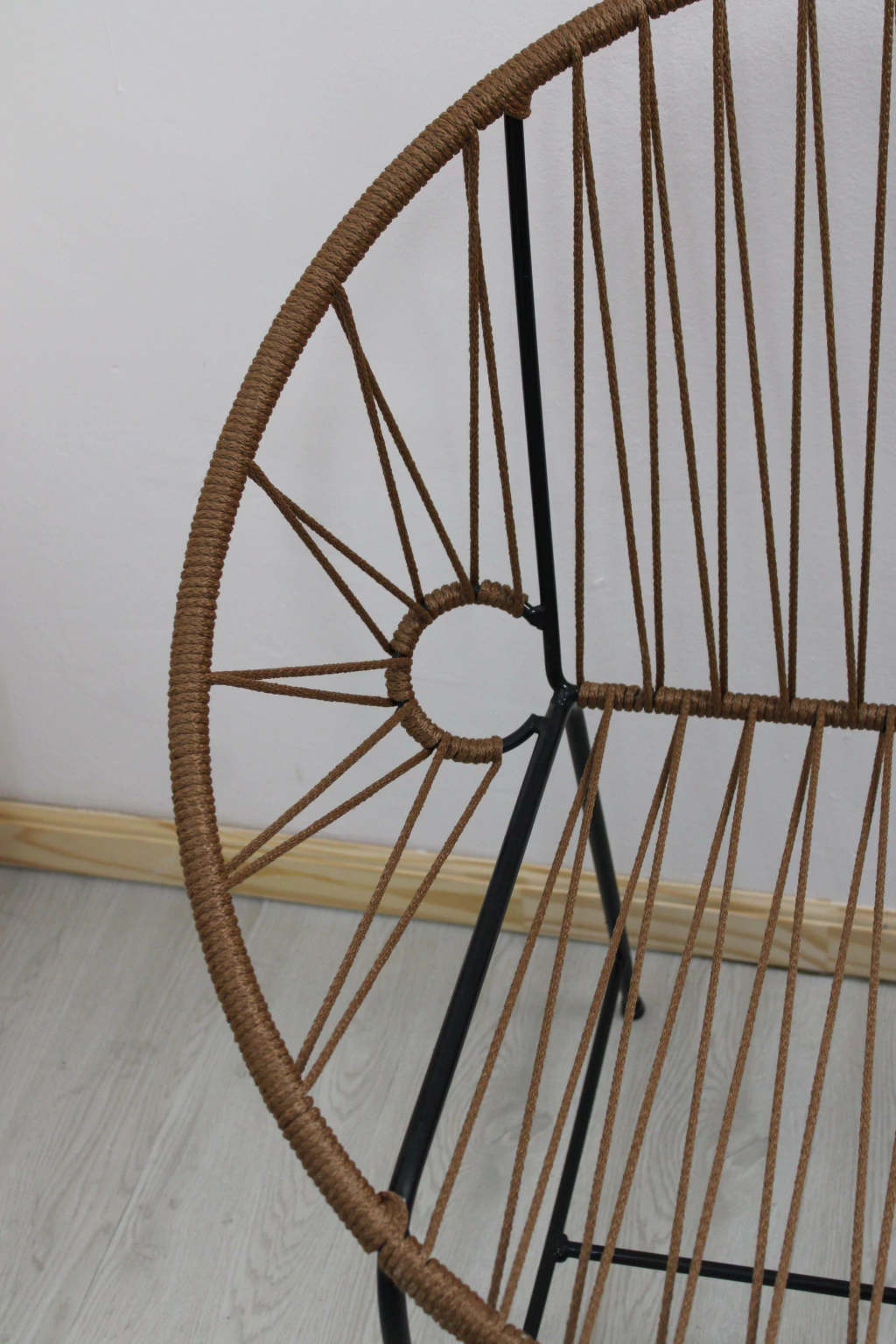 Hecha a mano en hierro reforzado y tejido en símil yute, Mueble de diseño artesanal estilo Acapulco, ideal para interiores o exteriores como terrazas, balcones o jardines.