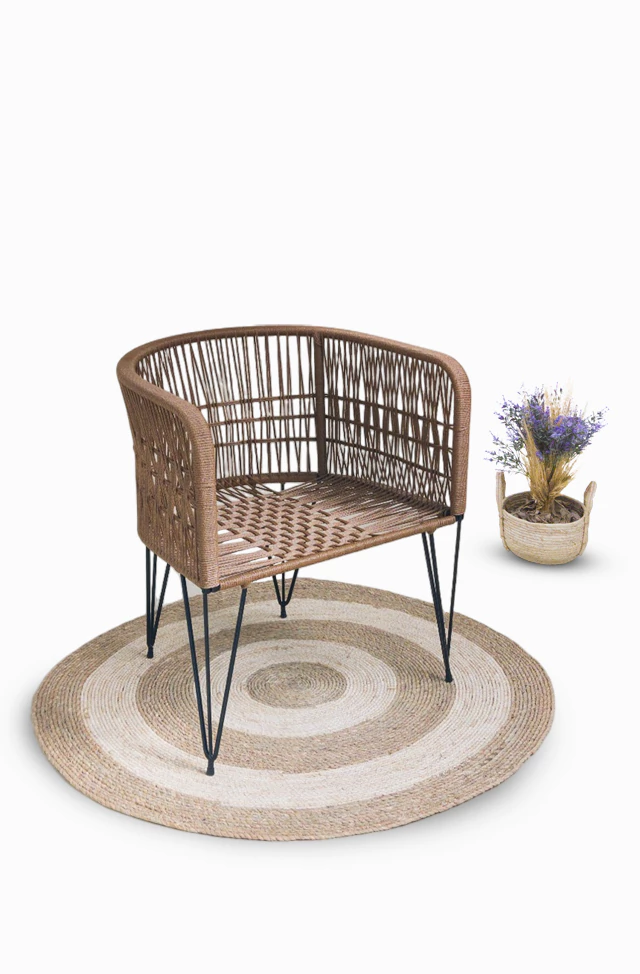 Estructura de hierro reforzado (blanco o negro) y tejido en soga símil yute, Mueble de diseño artesanal estilo Acapulco, ideal para interiores o exteriores como terrazas, balcones o jardines.