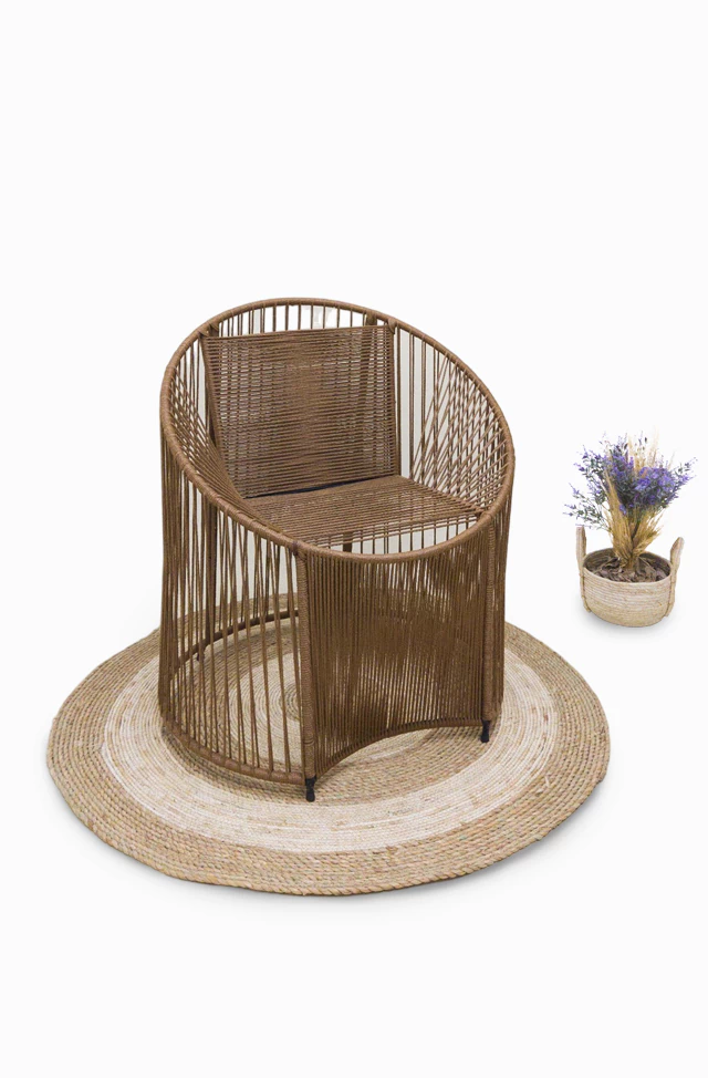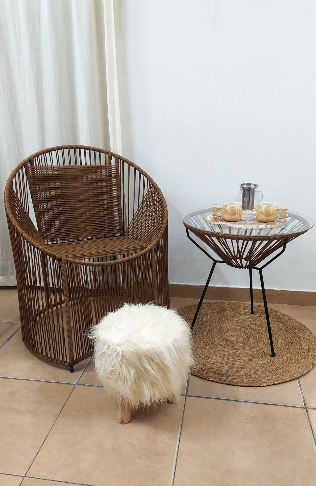 Estructura de hierro reforzado (blanco o negro) y tejido en soga símil yute, Mueble de diseño artesanal estilo Acapulco, ideal para interiores o exteriores como terrazas, balcones o jardines.